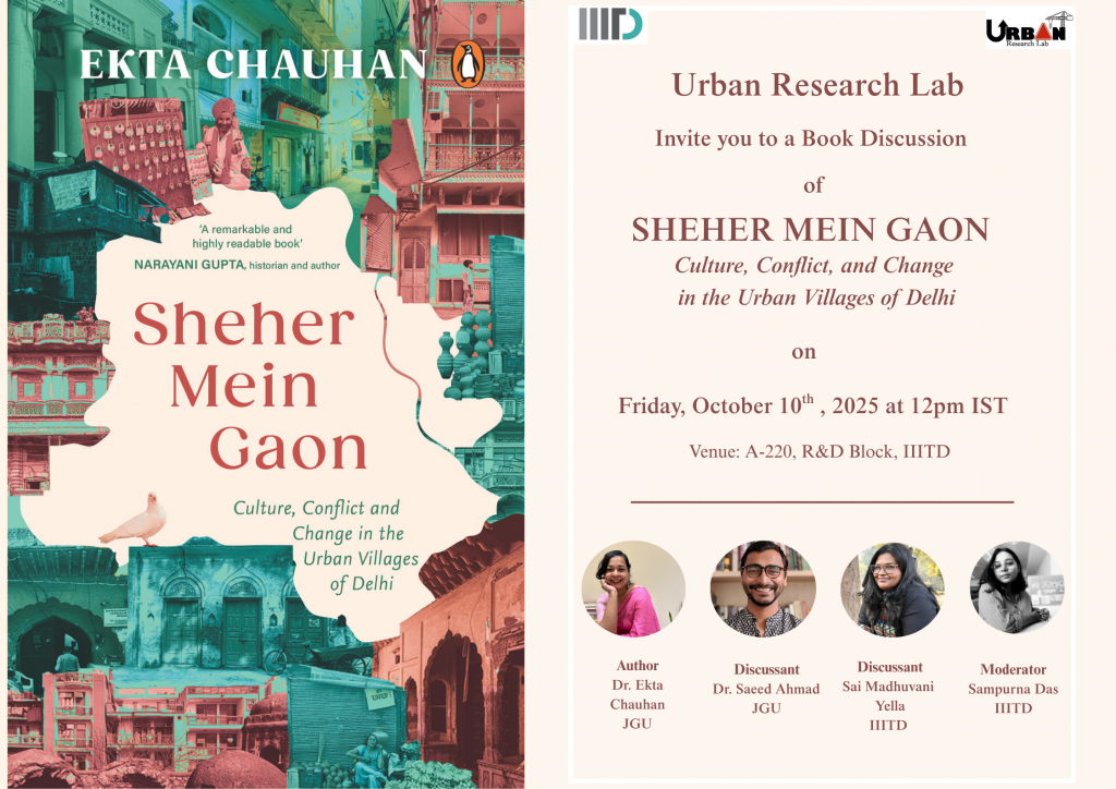 Join us for a Book Talk on Sheher Mein Gaon by Dr. Ekta Chauhan, scheduled on 10th October 2025 at 12:00 PM IST. The event will be held in hybrid mode. Click on the link below to join online.